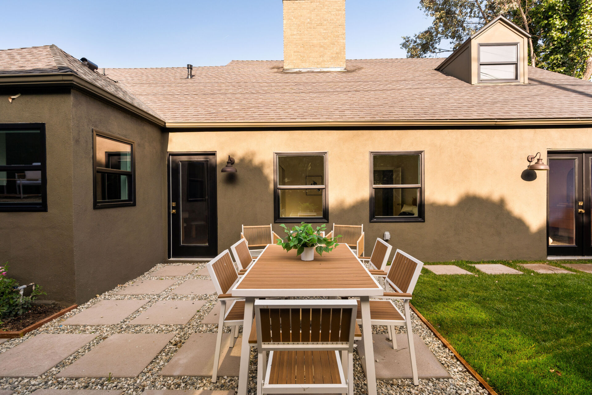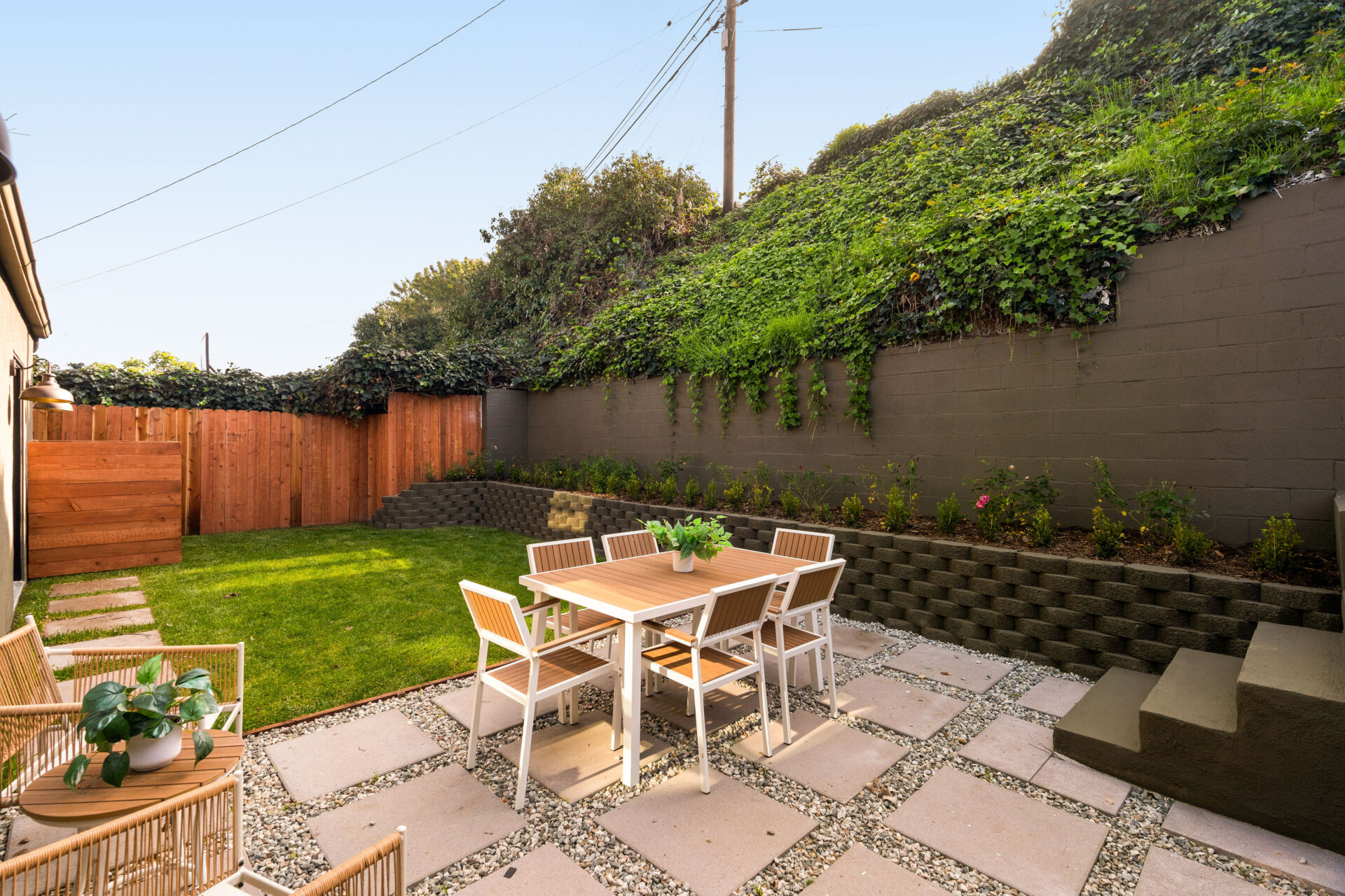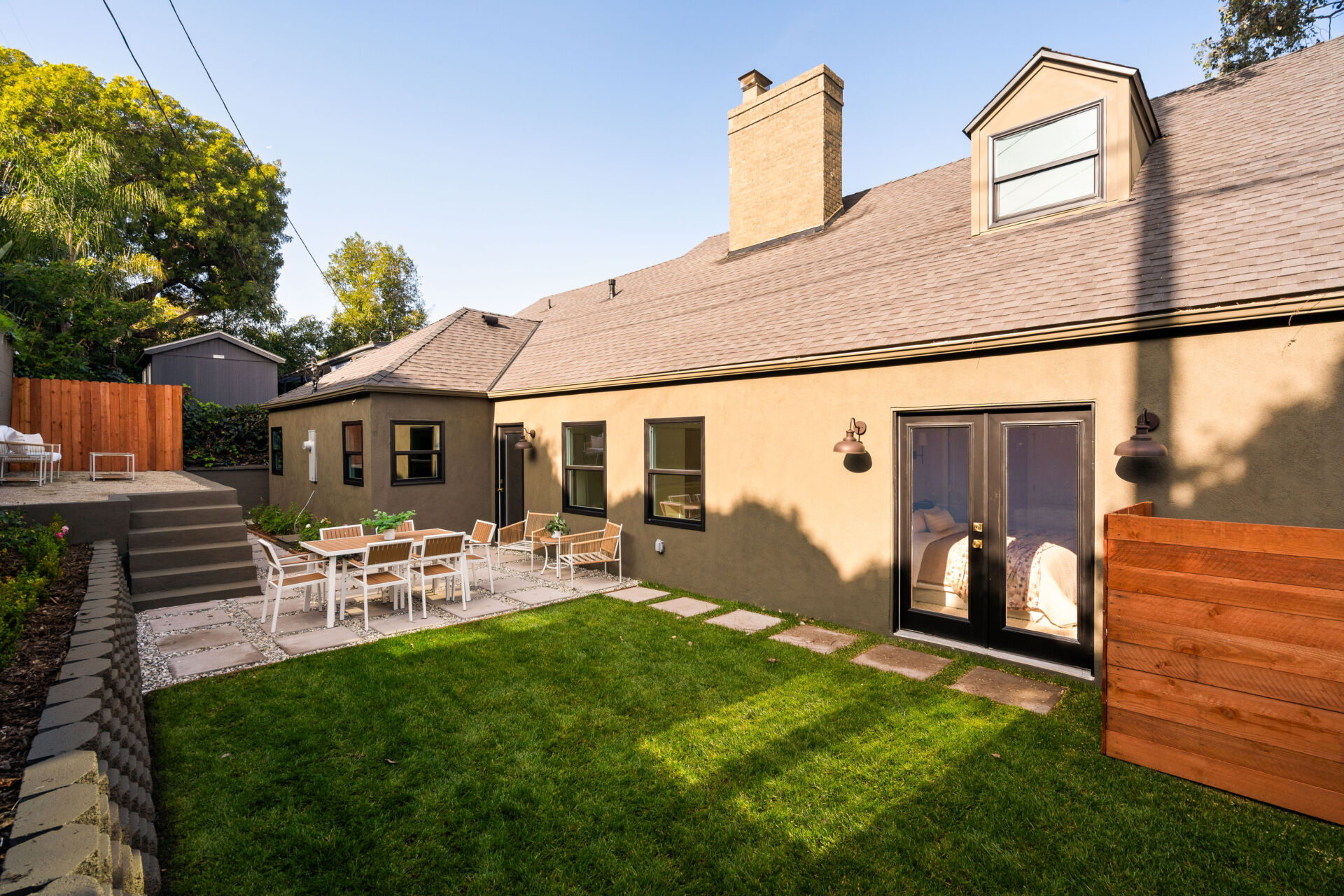 Outdoors, the private yard featuring multiple entertaining spaces unfolds like a hidden garden made for golden-hour dinners and late-night laughter under the stars!