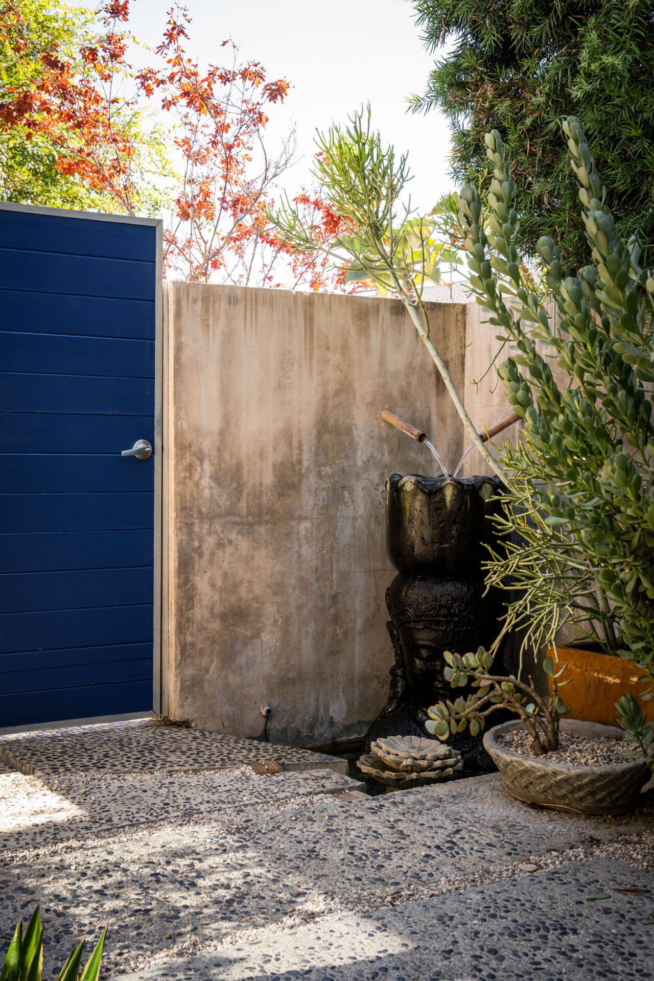 Tucked behind gates, hedges, and a lush tapestry of native, drought-tolerant plants and sculptural cacti, this private mid-century oasis in prime Los Feliz blends timeless design with tranquility. A majestic Japanese maple and zen-like courtyard with a babbling fountain set the tone, while stone paths, gravel walkways, and layered greenery invite you in before you’ve even stepped inside.