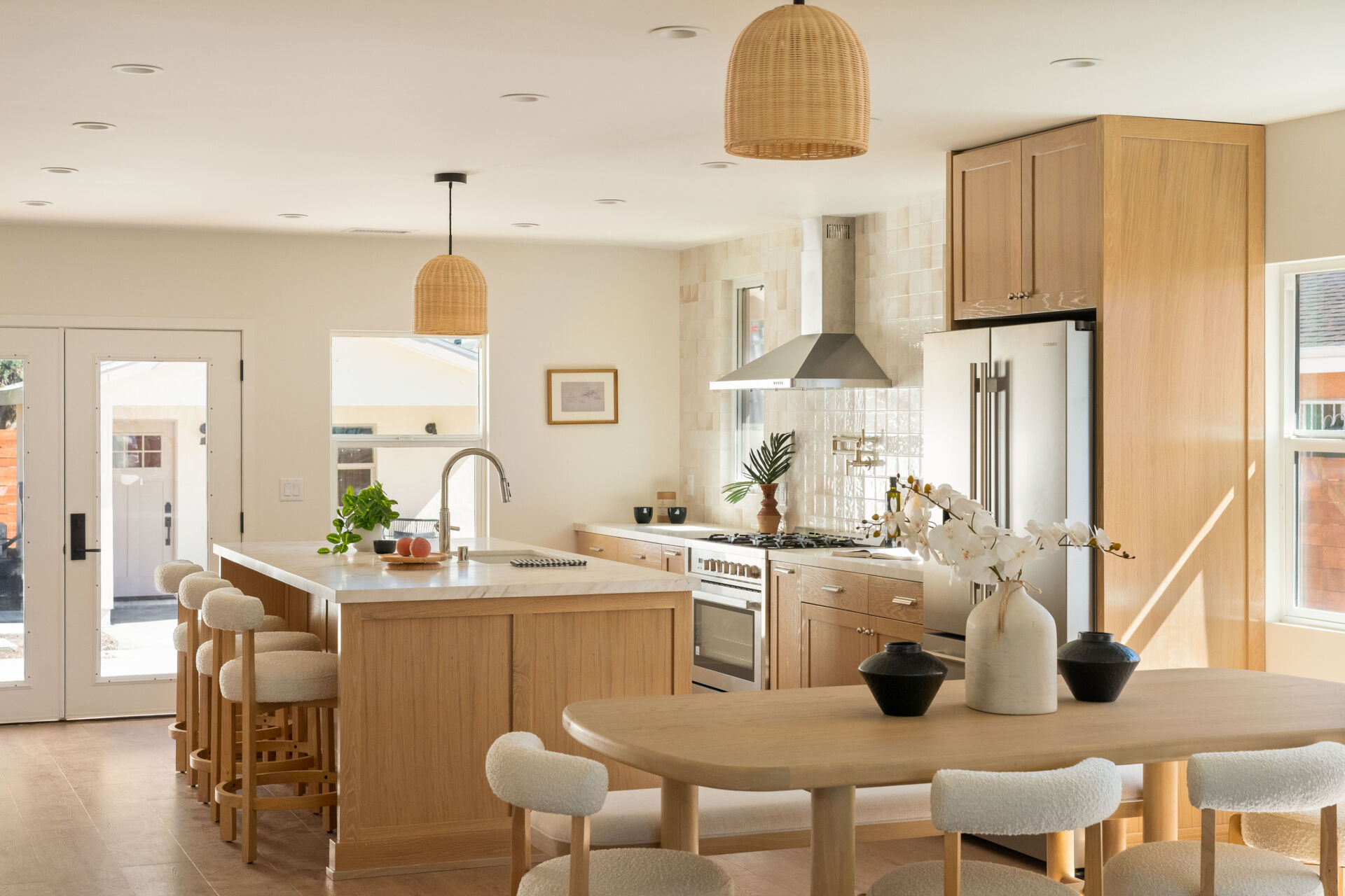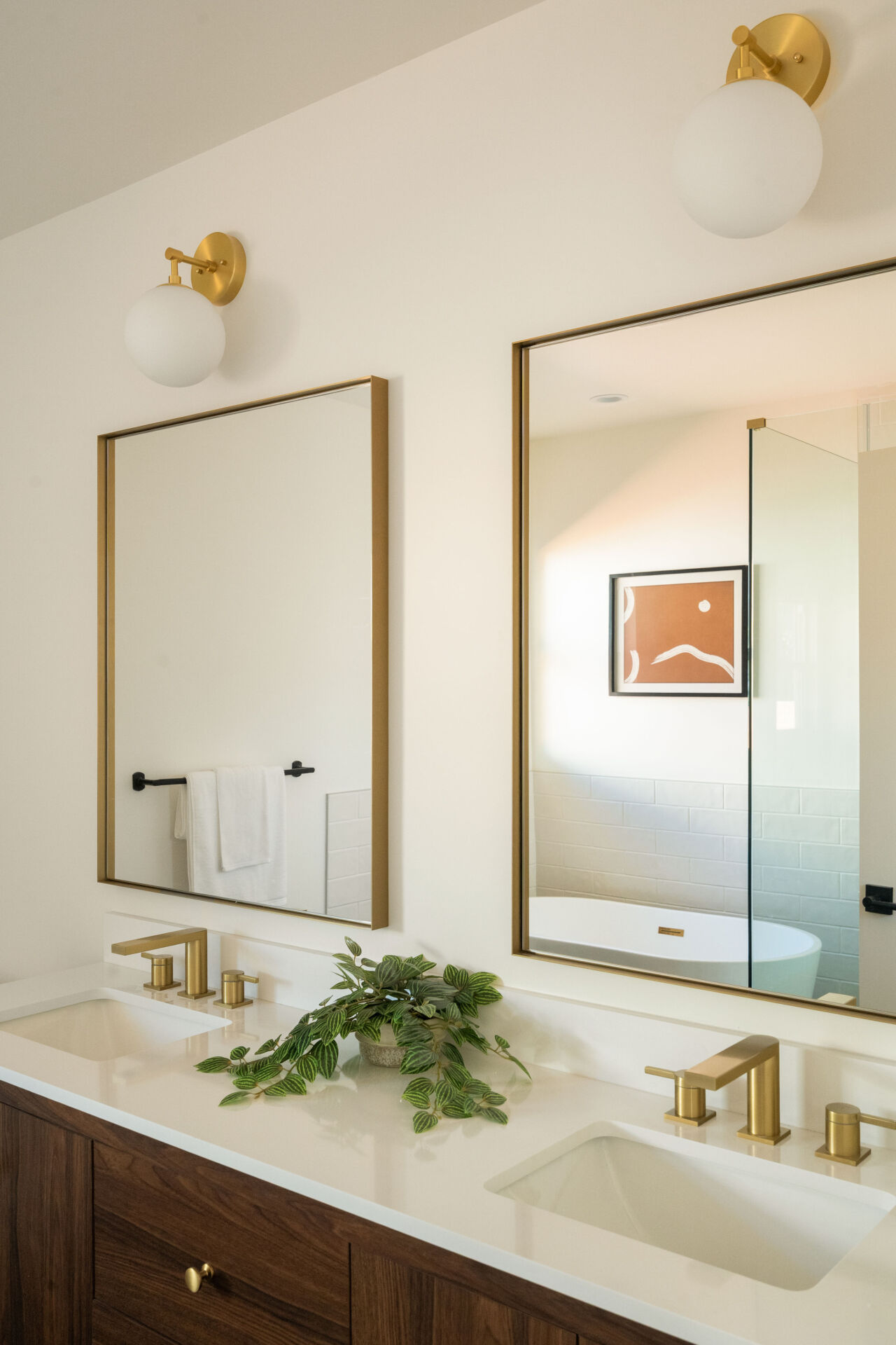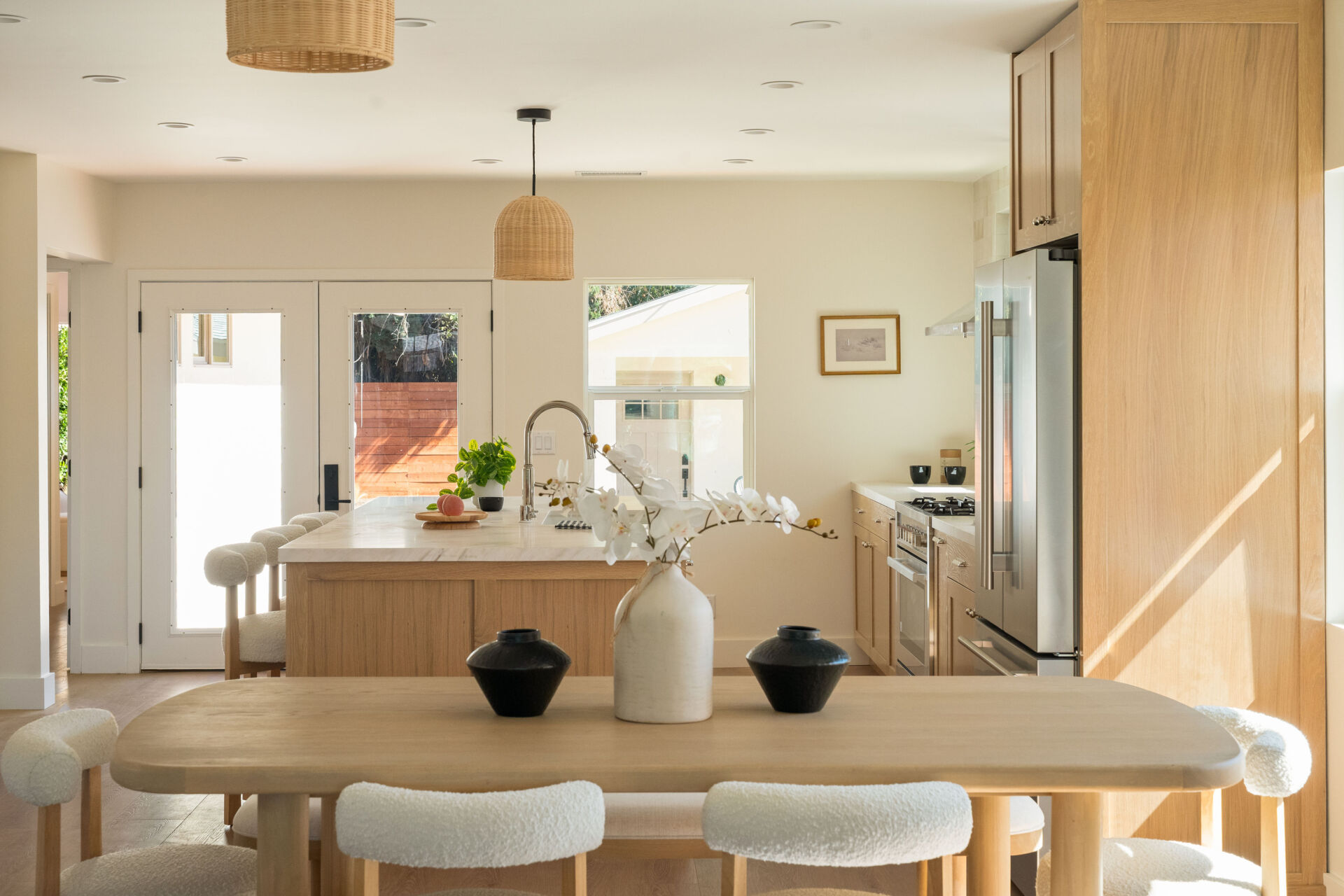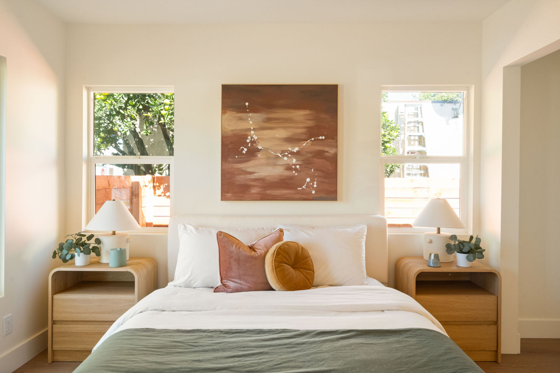 Three spacious bedrooms complete the space, including a primary suite with french doors leading to the garden. Indulge in self care in your private sanctuary, a true retreat with a spa-like bathroom with a dual vanity, newly tiled shower stall with a custom enclosure and separate soaking tub and walk-in closet nearby. The newly installed privacy fencing encases the sprawling yard space, creating a private haven for enjoyment. No expense was spared on the guest house, a permitted ADU with its own address – prime for income potential or visiting family + friends! Newly constructed, it enjoys all new systems including a 150-amp panel, it’s ready for your enjoyment. The kitchenette and full bath both enjoy high quality design aligned with the main home.