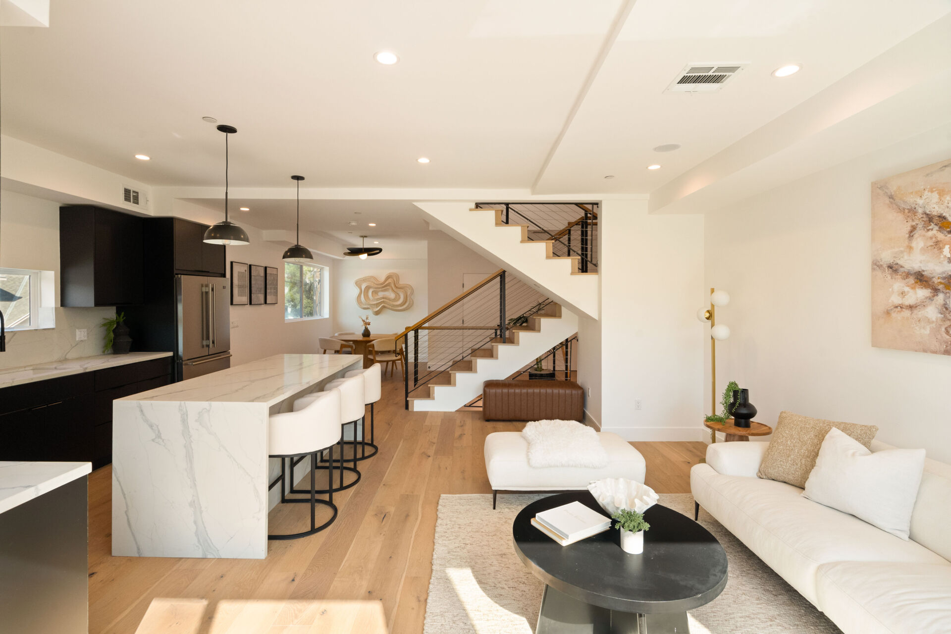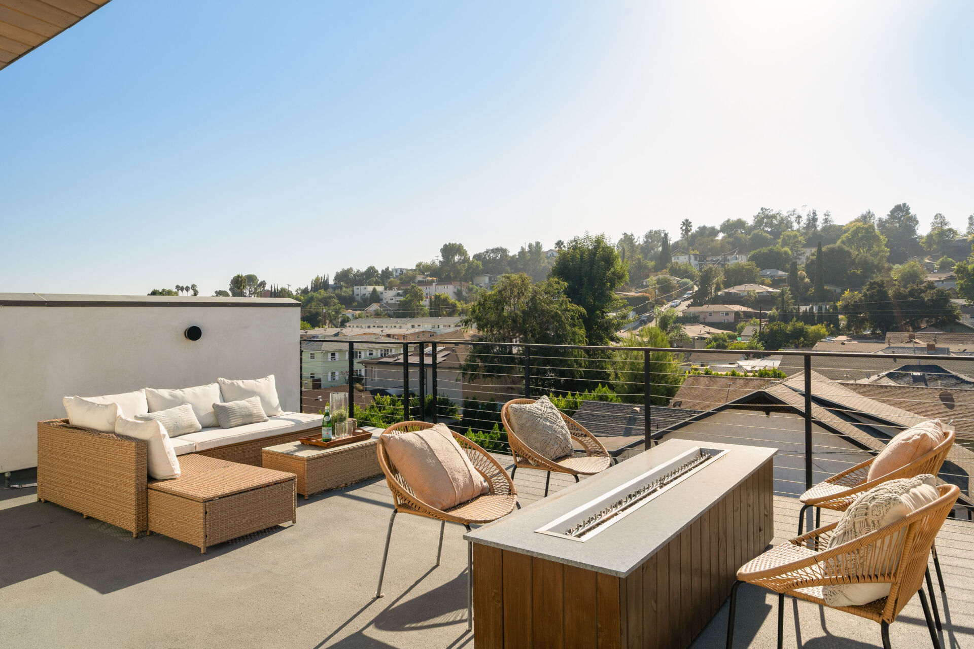 Enjoy three roomy primary suites all with dedicated baths + walk-in closets, lending to the flexibility of how you use the space. Two bedrooms enjoy their own private balconies offering relaxing spaces for solitary moments of morning reflections. An expansive roof top deck on the upper level has been prepped for you to customize it for premium al fresco living. Move right in with outlets galore for your ideal outdoor entertainment system set up, hook ups for an outdoor kitchen, and a built-in fire pit ready for enjoyment. Enjoy never-ending moments of gratitude as you indulge in sprawling views of verdant hillsides and twinkling city lights. Finally, you’ve got your own piece of the pie!